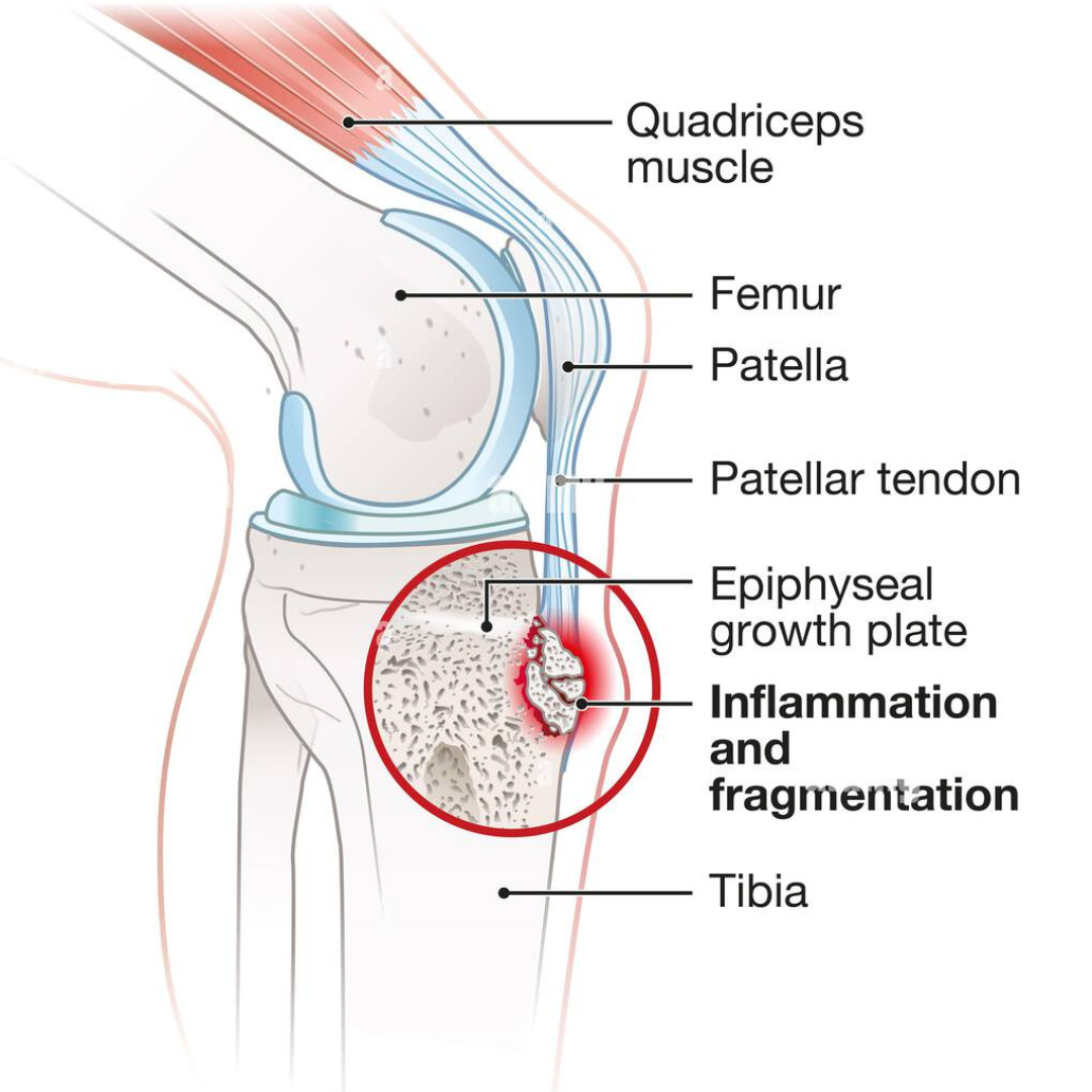 - Osgood-Schlatter disease (growth plate pain below the kneecap)