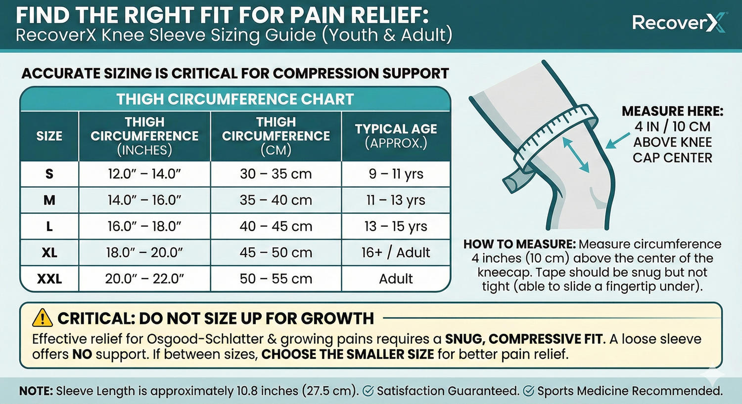 Sizing: Generic sleeves use adult sizing scaled down. RecoverX is designed specifically for youth proportions (shorter length, better fit around developing knees).